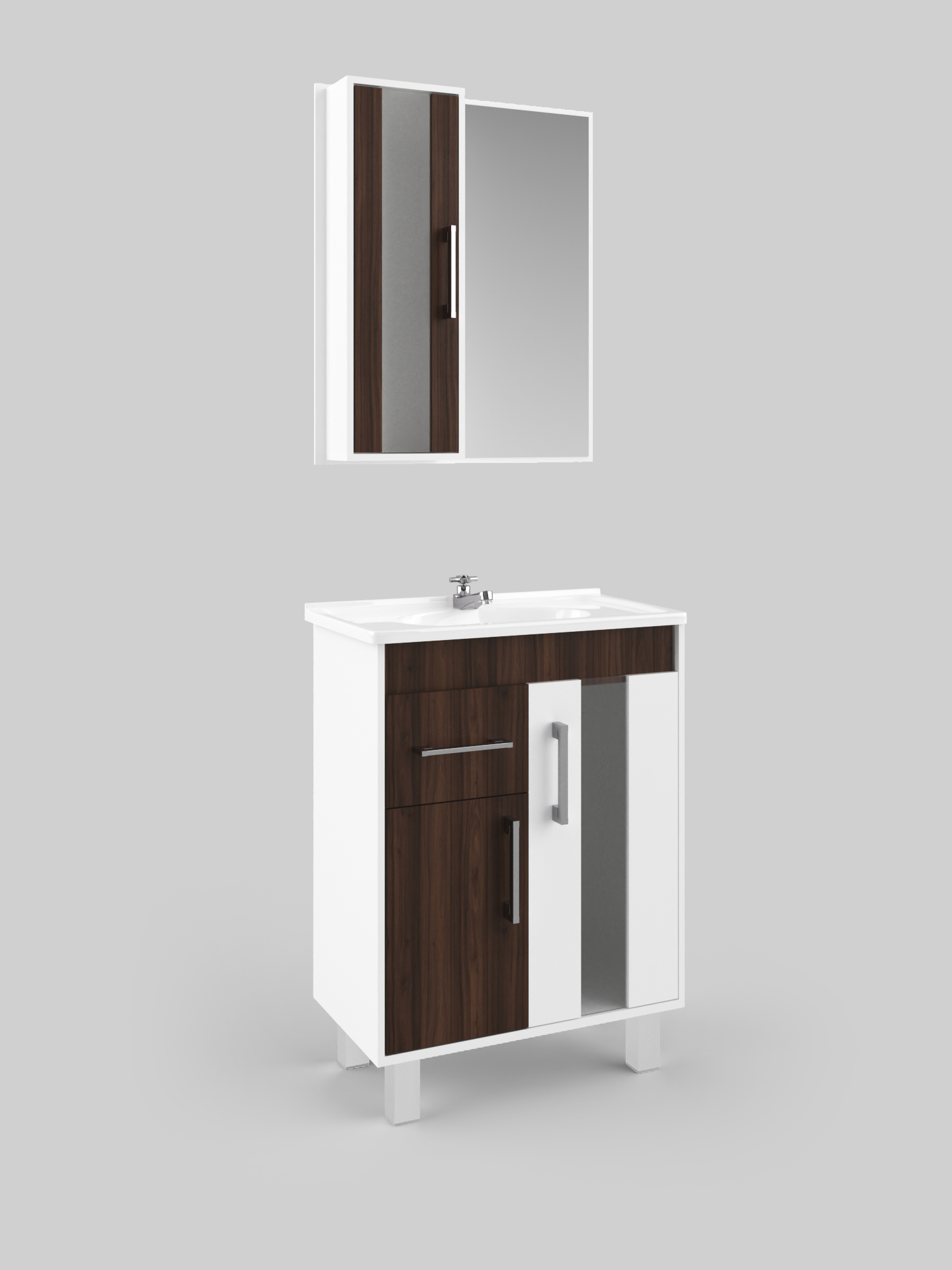 O Conjunto Lisboa 60 é um modelo tradicional que se adapta muito bem a qualquer ambiente. É composto por balcão, cuba e espelheira. As aplicações transparentes, no gabinete e na espelheira, garantem leveza e sofisticação ao conjunto. Os pés e puxadores em ABS complementam o conjunto além de trazerem beleza são fáceis de limpar.